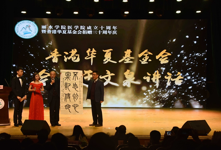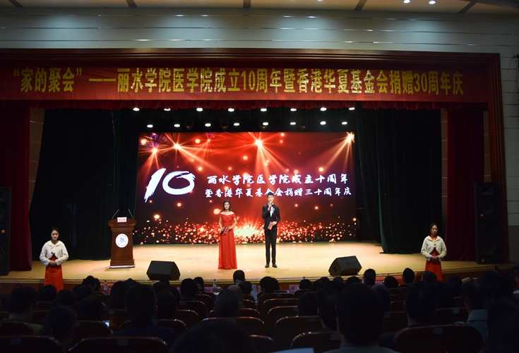2017年12月3日,丽水学院医学院成立十周年暨香港华夏基金会捐赠30周年庆主题会议于学术报告厅举行。市领导、香港华夏基金会会长、校领导、附属医院领导、校友口腔诊室联盟成员以及医学院历任党政领导、教师代表,全体教职人员和学生代表也出席见证了这一喜庆时刻。
