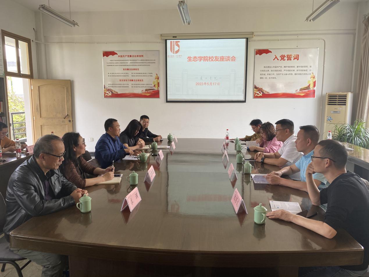 5月17日下午,生态学院召开以“凝心聚力、共绘新篇”为主题的校友座谈会。丽水市生态环境局副局长陈雨(农学93班)、丽水市生态环境局云和分局总工程师王锋(环治002班)、浙江同泽环境科技有限公司法人代表陈苏文(化学分析02班)、浙江省丽水生态环境监测中心高姗姗(环治00班)、丽水清源环保咨询服务部法人代表付响响(环治09班)应邀参加本次座谈会。