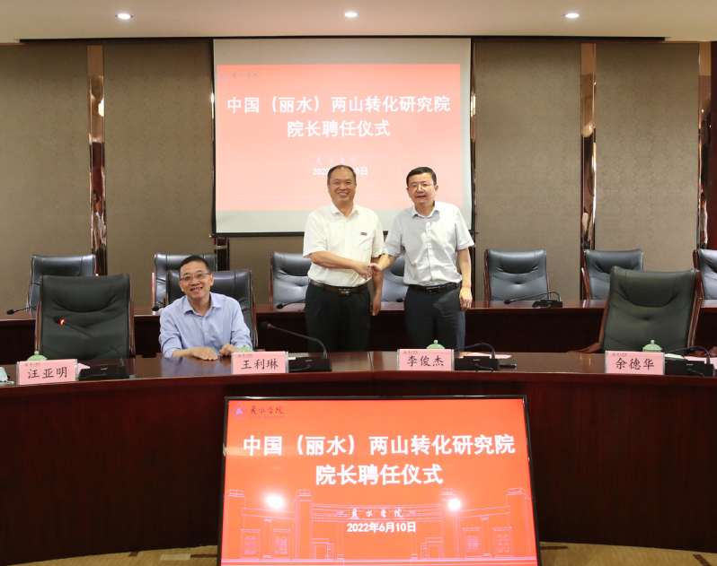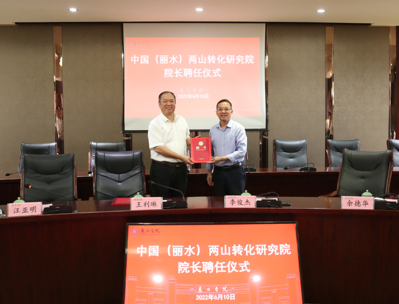 6月10日上午,我校举行中国(丽水)两山转化研究院院长聘任仪式,聘请市政协原副主席、市发改委原主任饶鸿来校友担任两山转化研究院院长。校党委书记王利琳,校长李俊杰,校党委组织部部长余德华和市发改委党组副书记、副主任张春根等出席仪式,副校长汪亚明主持仪式。