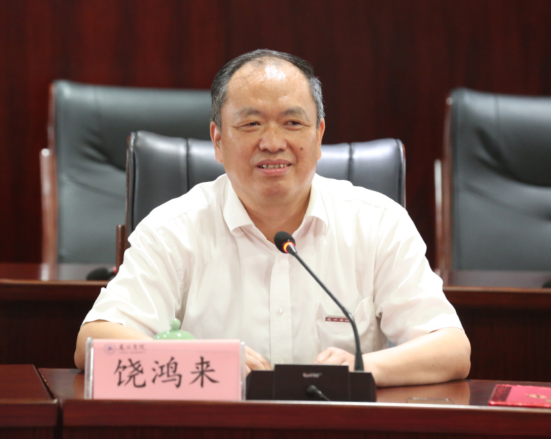 王利琳在讲话中代表学校党委、行政对饶鸿来校友一直以来给予母校的关心支持、为两山学院建设发展所作出的贡献表示衷心感谢。他指出,学校办学115年来,为国家和社会培养了一大批在各行业领域作出卓越贡献的校友,饶鸿来校友就是其中的杰出代表,拥有丰富的党政工作经历,是我市经济社会工作领域的专家,对区域生态经济发展和生态文明建设有深入的研究、较高的造诣和广阔的视野,在多个岗位上都取得了突出成就;如今饶鸿来校友回到母校工作,也是学校弦歌不辍、薪火相传的重要见证者,希望饶鸿来校友继续发挥自身优势,为两山学院建设国家级智库,打造浙江著名、全国知名新型特色学院,产出一批高水平研究成果作出新的更大贡献。王利琳表示,学校和相关职能部门会全力支持配合,为饶鸿来校友和中国(丽水)两山转化研究院顺利开展工作提供全方位、高质量的服务保障。