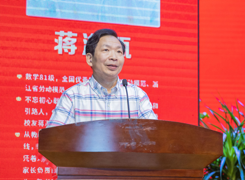 【人物简介】蒋海瓯,丽水师专数学81级校友,青田县教师进修学校正高级教师,先后获“全国劳动模范、全国优秀教师,浙江省功勋教师、浙江省特级教师、浙江省高考首次自主命题教师,丽水市杰出人才、丽水市拔尖人才”等荣誉称号。从1984年至今,蒋海瓯老师凭借着对山区教育事业的执着追求,对学生、家长的高度责任感,默默耕耘,甘为人梯,取得了传道授业、教书育人的丰硕成果。获“丽水地区首届高中数学优质课评比”一等奖,连续五年荣膺“丽水地区科学青年奖”。指导的两名学生获“全国初中数学竞赛”一等奖,让他成为“浙江省名师”培养人选,当选为丽水市首届党代会代表。他曾参加“浙江省首期特级教师高级研修班”学习和“浙江省首批名师高级研修班”学习,主编五部、参编多部教学指导用书(均由国家级、省级出版社出版),近四十篇论文在国际性、全国级、省级学术专业刊物发表,二十余篇论文获全国级、省级论文评选一、二等奖等。