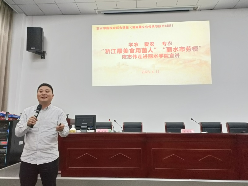 为进一步推进社会主义核心价值观宣传教育工作,大力弘扬爱国主义、爱岗敬业、乐于奉献的精神,近日,“浙江最美食用菌人”“丽水市劳模”陈志伟校友应邀走进校园,在生态学院博文楼进行宣讲,生态学院学生代表及校企联合课程《食用菌文化传承与技术创新》的同学们参加了本次讲座。