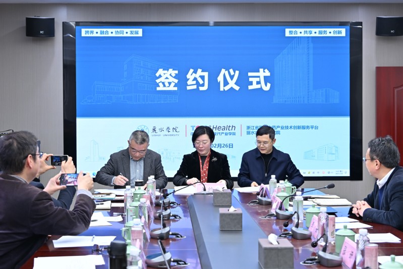 2月26日下午,丽水特色资源与中药标准研究院签约揭牌暨发展战略研讨会在我校举办,丽水学院校长李安、莲都区区长张妍、上海诗丹德生物技术有限公司董事长谢天培出席会议,丽水学院副校长沈世山主持会议。