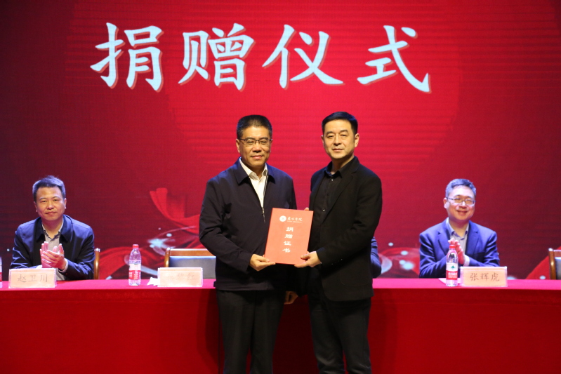 捐赠仪式现场,我院院长吴松泉教授代表学校接受捐赠,副校长蒋黎红向王宏颁发捐赠证书,以表感谢。