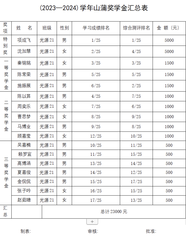 根据浙江山蒲照明有限公司与丽水学院签订的共同办学协议和教育基金会资金使用条例,根据山蒲奖学金评定流程,经光源与照明专业建设委员会审核和批准,项成飞等17位学生获得2023-2024学年山蒲奖学金。现将评审结果予以公示。
