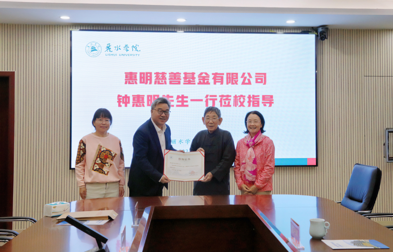 11月6日下午,惠明慈善基金有限公司钟惠明先生向我院定向捐赠资金人民币20万元,用于学生奖学金和助学金项目、图书馆助学图书等项目。惠明基金会创办人钟惠明,丽水学院松阳校区管委会主任、职业技术学院党委副书记、院长胡锋吉,丽水学院职业技术学院党委书记、副院长周成军等参加活动。