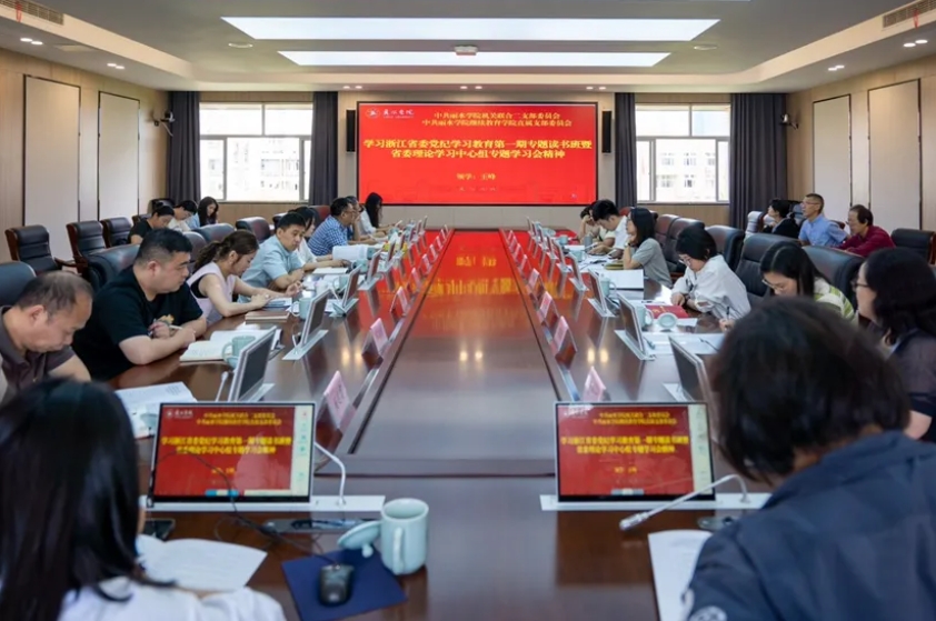 本次主题党日活动分四个阶段,第一阶段全体党员在陈轶领誓下重温入党誓词。第二阶段理论学习部分,余德华教授做党纪学习教育专题讲座,支部书记、委员作为领学人,集体学习了《习近平总书记在湖南考察时关于党纪学习教育重要指示精神》《习近平总书记在重庆考察时关于党纪学习教育重要指示精神》《浙江省委党纪学习教育第一期专题读书班暨省委理论学习中心组专题学习会精神》《中组部召开基层党建工作重点任务推进会精神》《中国共产党纪律处分条例第六第七章内容》《习近平总书记寄语新时代青年》《中共中央办公厅、国务院办公厅关于健全新时代志愿服务体系的意见》《中国共产党党员网络行为规定》以及《党纪学习教育警示教育读本内容》等相关内容。
