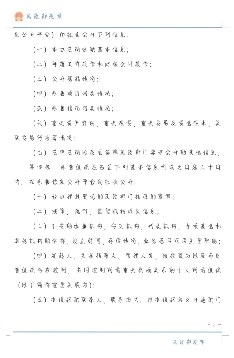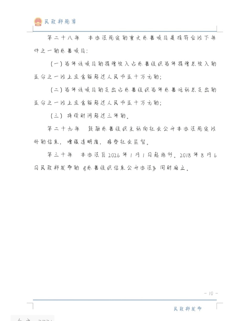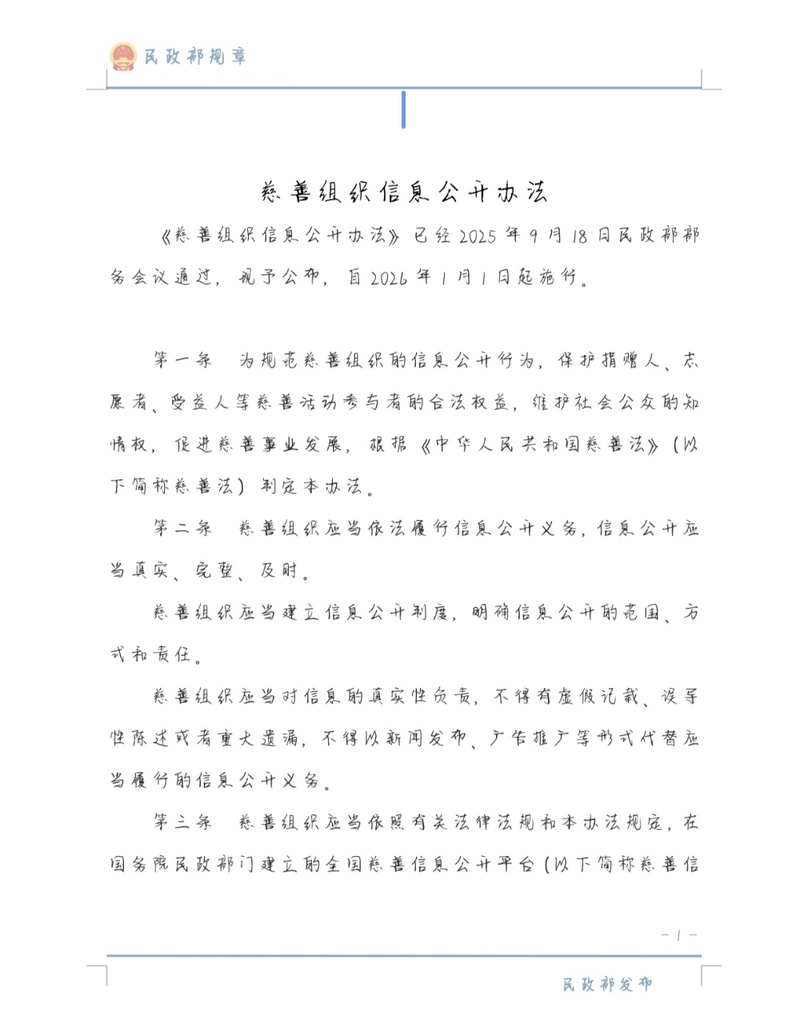 《慈善组织信息公开办法》公布将于2026年1月1日起施行