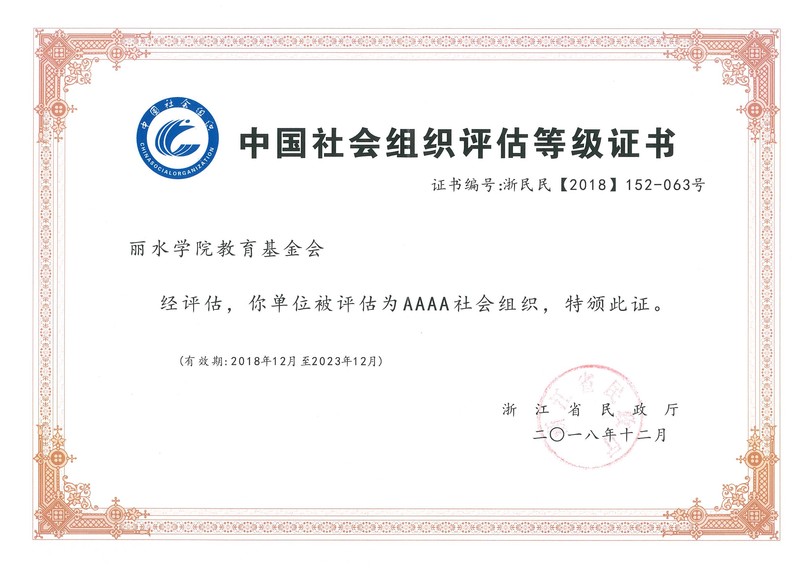 近日,浙江省民政厅公布了2018年度全省性社会组织评估等级结果,我校教育基金会被评为4A级社会组织。