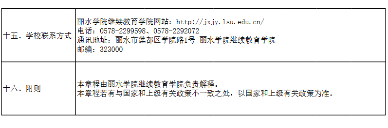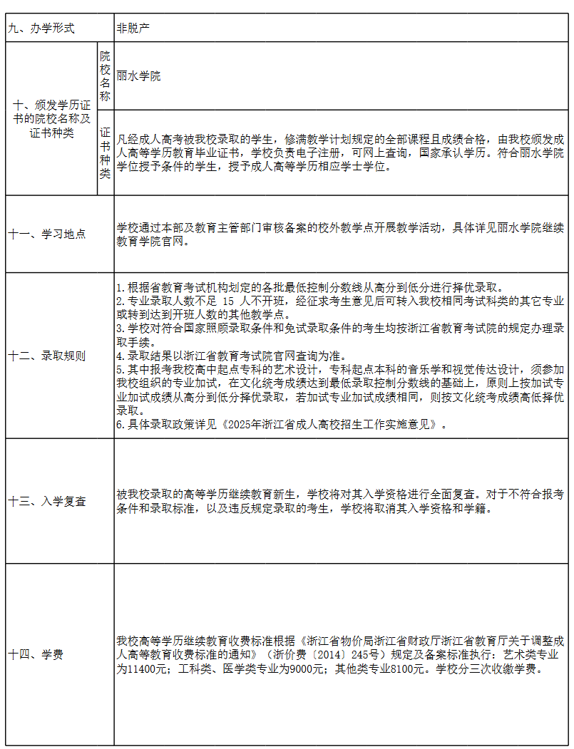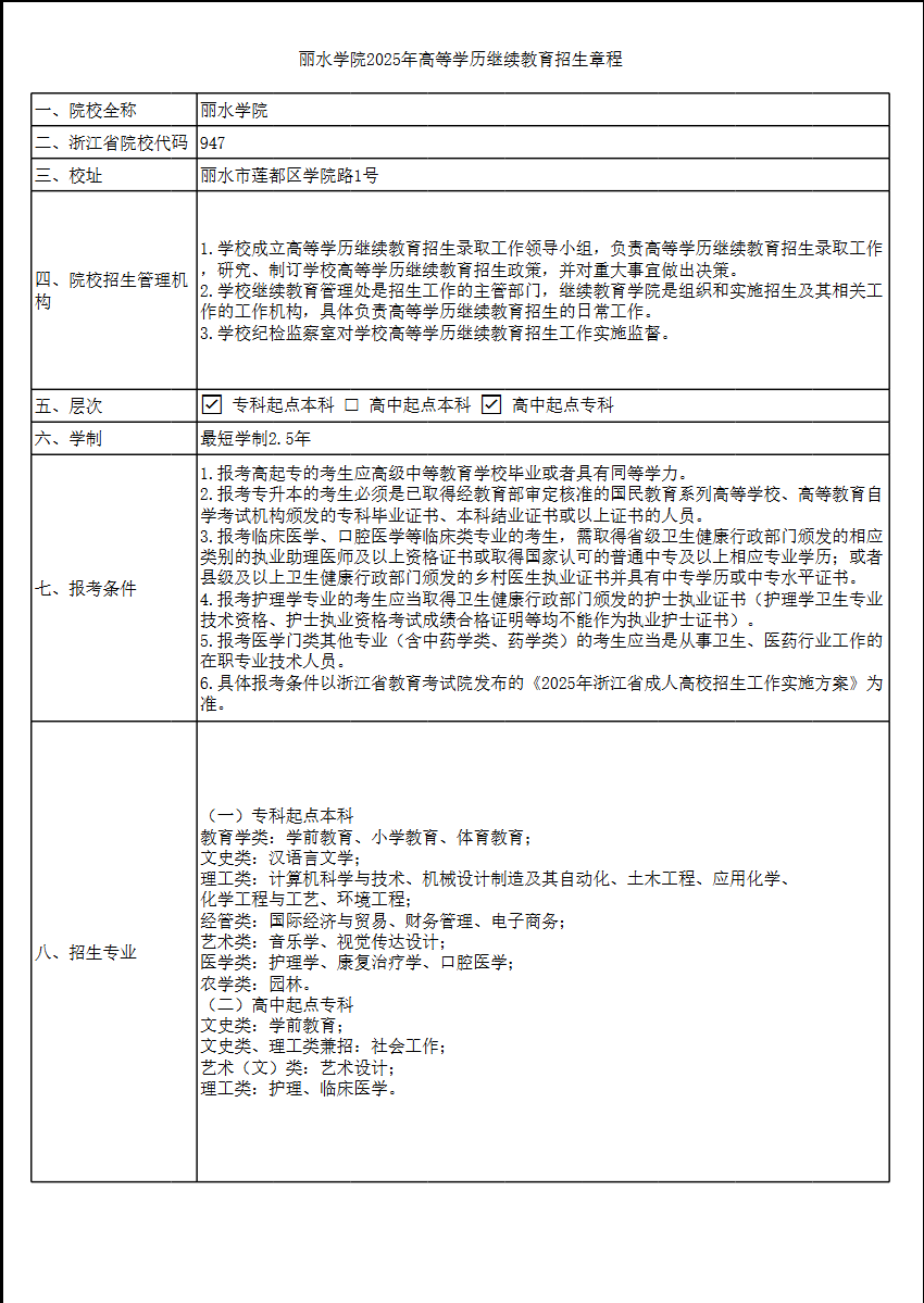 丽水学院 2025 年高等学历继续教育招生章程